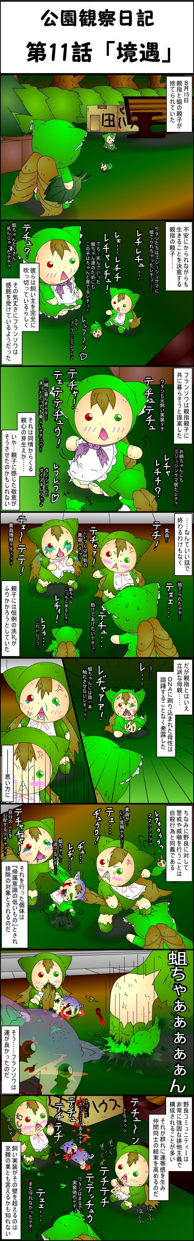 | js0050.jpg | 公園観察日記 第12話 〜生きるために助ける〜 | 510KB | 06/09/24(Sun),02:28:40 | 20364 | image/pjpeg | 第12話「不遇」.JPG |