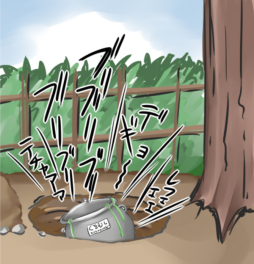 土に埋めた後も即身仏よろしく 三日くらいは、デギョーだのテチャーだの ブリブリという生存確認できる音がしていた まったくしぶといな… 四日目にしてようやく静かになり・・・ そして俺も埋めたことを忘れ去り 死ぬまでこのことを思い出さなかった
