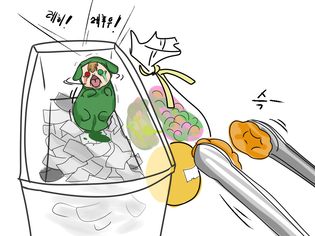 自分の置かれた現状に気付いて騒ぎ始めた 束の間とは言え飼い実装の身分となり、飼い気分を味わってしまった蛆実装 それが取り上げられると知って激しく抵抗する 必死で身をよじってトングから逃れようとイゴイゴと蠢き、軟便を撒き散らしながらレヒィ!と威嚇する こんなことに手間隙をかけているわけにもいかないので、俺は無理やりトングで挟むと水槽の隅にぽいと放る |